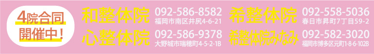 和 整体院井尻院(南区井尻)・希 整体院みなみ(博多区元町)・希 整体院(春日市昇町)・心 整体院(大野城市瑞穂町)